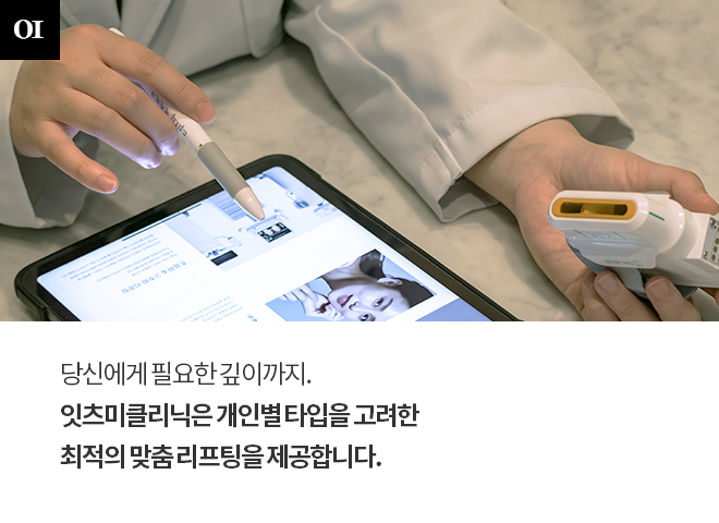 잇츠미의원 울쎄라 리프팅은 온다 슈링크등 다양한 복합시술이 가능하며, 맞춤형 시술로 더욱 높은 효과를 기대해보실 수 있습니다.